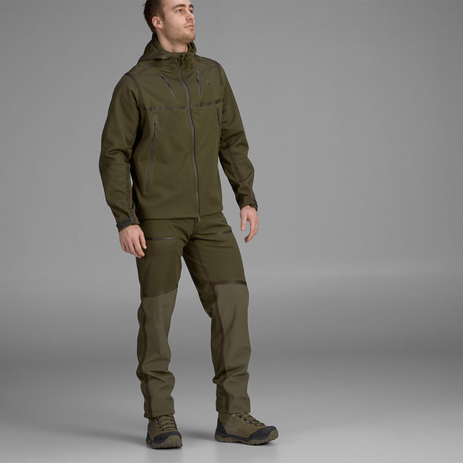 Pantalonii Hawker Advance Seeland sunt conceputi pentru vânători care nu se tem de terenul dificil și de vremea rea. Pantaloni respirabili, ușori, silentiosi, potriviți pentru toate tipurile de vânătoare activă. Hawker Advance prezintă o membrană rezistentă la vânt și impermeabilă și cusături armate care sunt sigilate în interior și exterior. Pe partea din față, există o armare suplimentară de la genunchi în jos până la glezne, elastica. Acest lucru asigură confortul și libertatea de mișcare, ofera siguranta in urmărirea prin desisul padurii sau pe pantele abrupte. În interior, pantalonii sunt căptușiți cu un poliester moale, tip fagure. Permite aerului și umidității să circule, să se disperseze și să se evapore mai repede. Acest lucru face ca pantalonii să fie foarte respirabili și să regleze temperatura. Dacă vă incalziti, vă puteți ventila deschizând în spatele genunchilor. Cele patru buzunare au fermoare impermeabile, iar deschizăturile gleznei au o banda elastică, prinsă în interiorul piciorului, pentru a evita prinderea de crengi, etc.